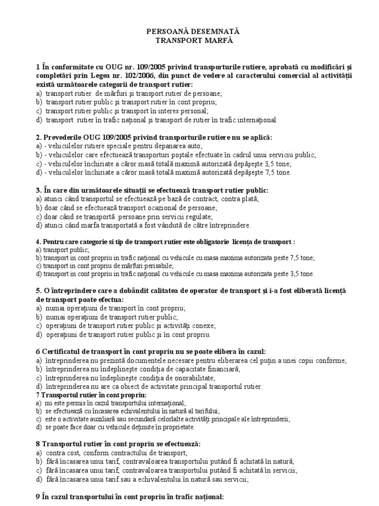 Persoană Desemnată Transport Marfă