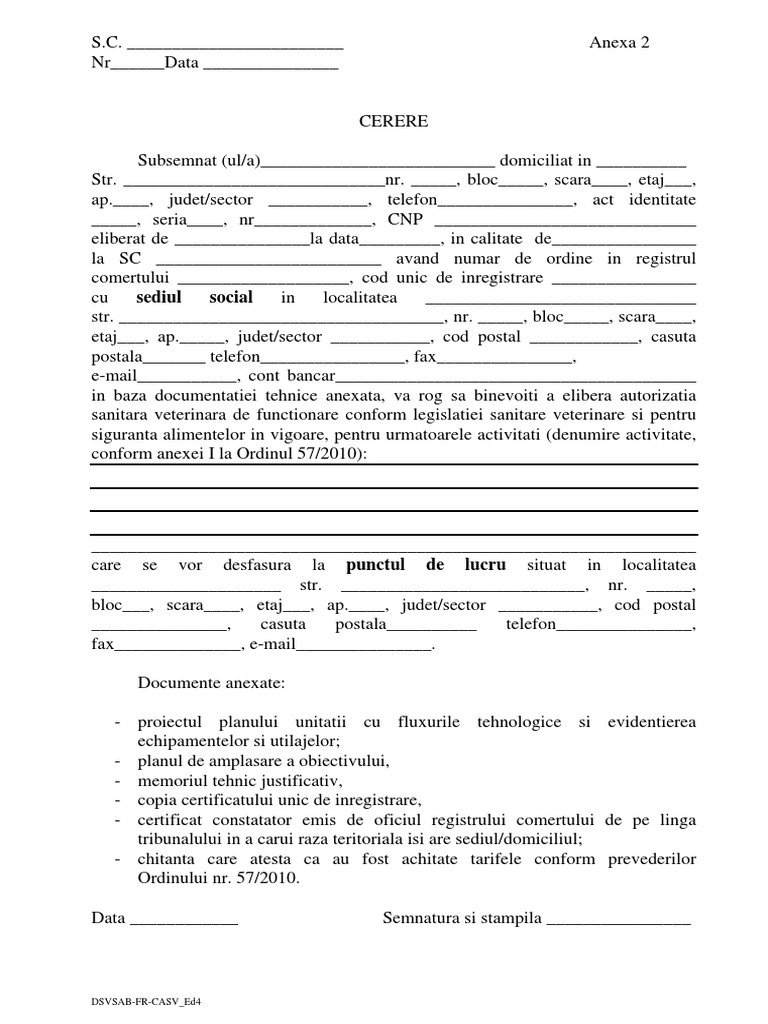 Cerere Autorizare Sanitara Veterinara